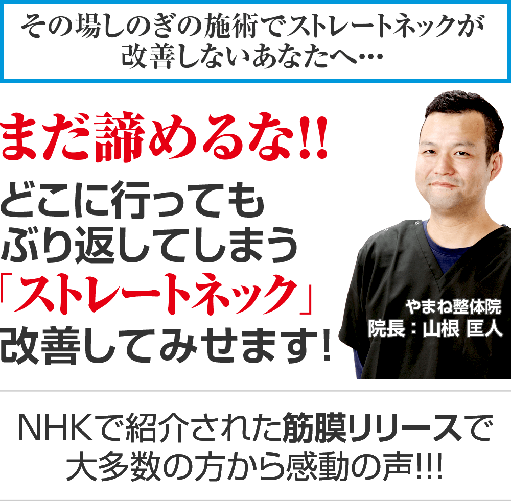 ストレートネックお客様延べ1万人を施術してきた私が必ず改善してみせます。